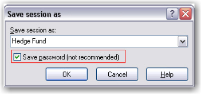 WinSCPI允许您支持未来登陆的 “储存时段”,无需提供用户名/密码。为此,请在WinsSCP登录窗口中输入以下内容,然后选择保存而不是登录。创建时段名称,请选中“保存密码”,然后点击“OK”。以后您可以选则在每次启动WinSCP是登陆此时段。
