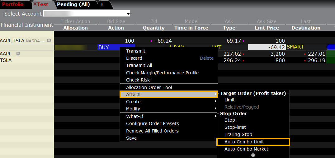 您传递了您的委托单。当前XYZ的市价为$61.44,且初始触发价为$60.44($61.44-追踪金额1.00),限价为60.54(触发价+限价偏离值0.10)。