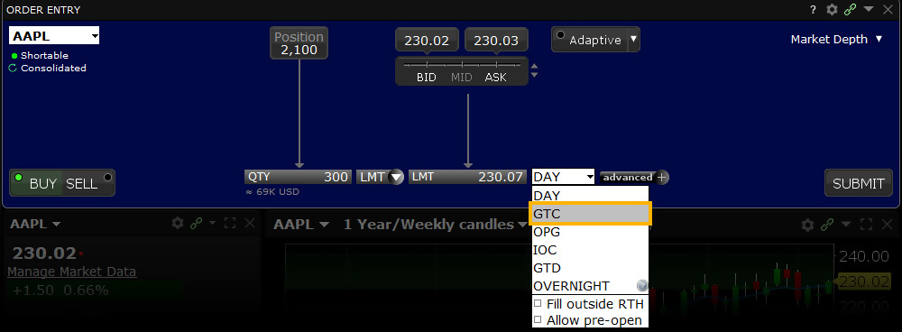 挂钩至市价 – 与挂钩首要的风格不同,挂钩市价会将委托单与买卖价进行反向挂钩,即看涨期权买单会挂钩至卖价的隐含波动率,而期权卖单会挂钩至买单的隐含波动率。客户可通过设定偏离值,使委托单变得不那么激进。