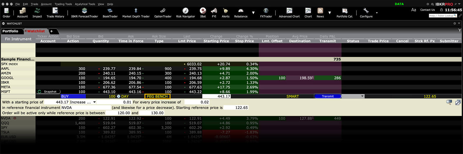 IBKR Pro版交易者使用我们的委托单类型、算法和工具实施交易策略,其有助于限制风险、提高执行速度、支持价格改善、提供隐私保护、把握市场时机及简化交易流程。